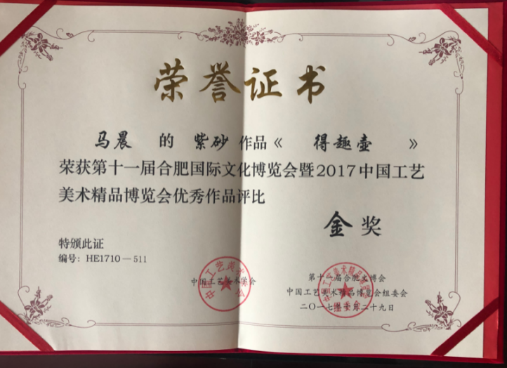 該作品榮獲中國(guó)工藝美術(shù)精品博覽會(huì)金獎(jiǎng)